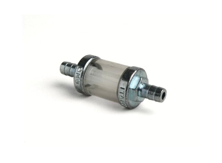 This OMG fuel filter has a capillary synthetical filter net set in a strong transparent plastic cylinder with metal connections. So any fuel contamination can be easily detected.