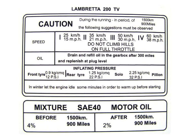 Lambretta Sticker, running in, Tv200