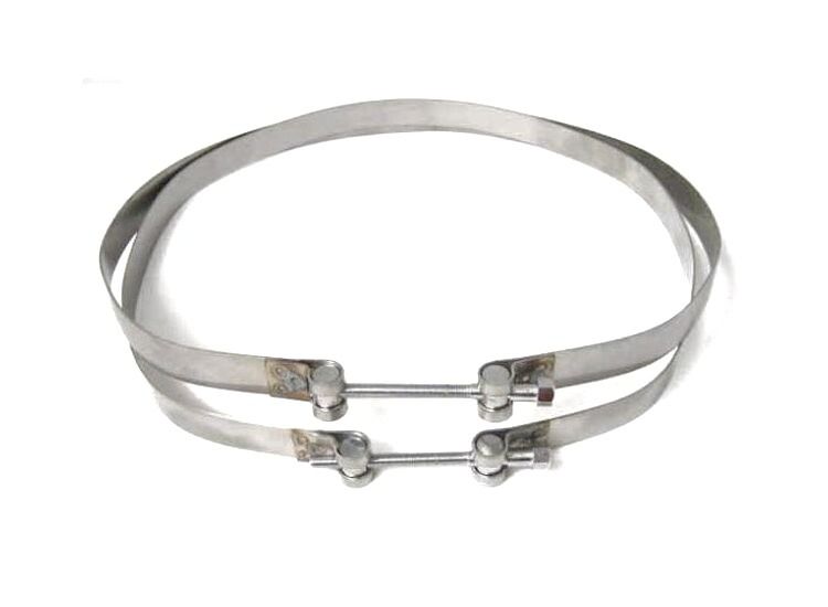 This is a complete Gp, Li series 1 637mm, Stainless steel petrol tank strap kit containing two tank straps and two tank strap trunnions.