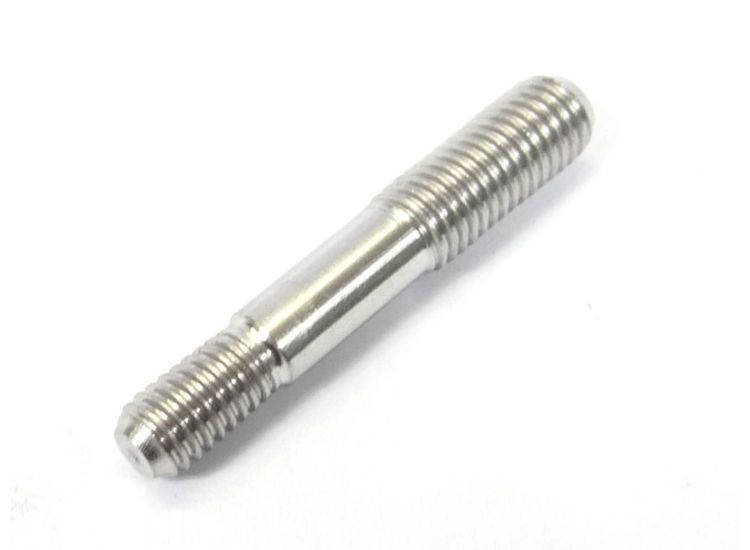 A stainless steel stepped 7mm to 6mm oversized stud to repair a damaged crankcase side tailpipe 6mm thread.