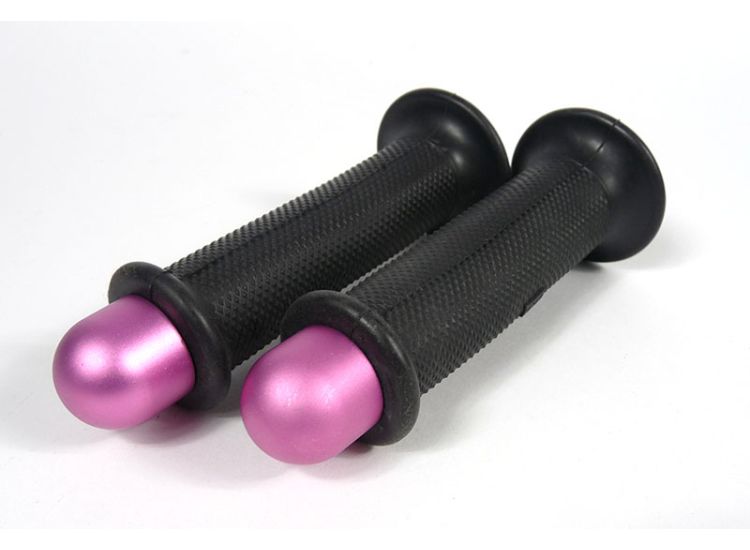 Lambretta Headset (handlebar) grips, TZR type with Pink bar ends, pair, Black, S3, MB