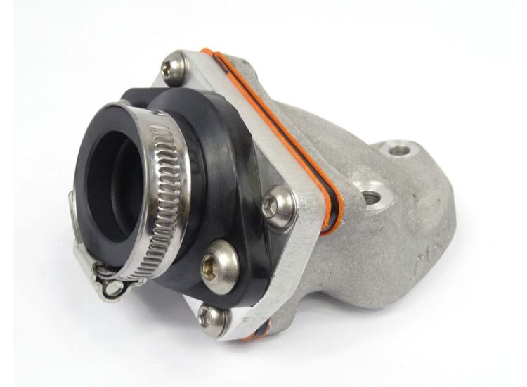 Inlet manifold, Lambretta large block, Shorty 6 petal reed valve assembly flange adaptor type, Dellorto PHBL, Race-Tour MB