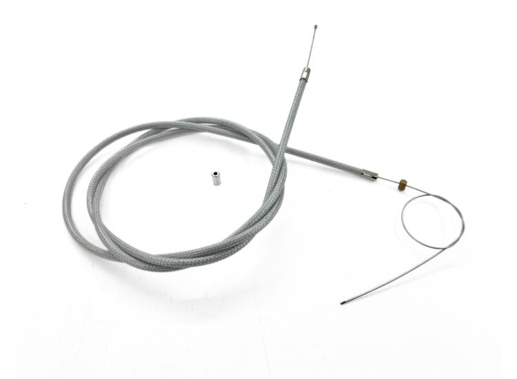 Lambretta BRAIDED extra long friction free throttle cable, specially made to suit any Lambretta (Series 1, 2 or 3) with a large carburettor fitted (Bigger than the standard 18mm, 20mm & 22mm Jetex)
